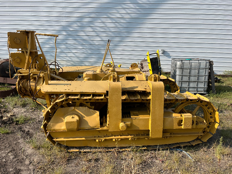I brought home this Thirty Five gas, and I'm torn on what to do with it. I actually bought it last year, but just got around to getting it now. I'm curious what the general consensus of the group is. If I do restore it, I would be removing the dozer. If anyone is interested in that, let me know. The blade itself is in very nice shape. Nice face, cutting edge, and frog. Most of the tin work is rough, tank looks ok, manifolds are shot, engine oil fill is cracked. I was told the engine was rebuilt, but haven't dug into it to confirm. Nothing has been touched on the undercarriage, transmission, finals, etc. The undercarriage does not roll freely. The guy I got it from tried backing the brakes all the way off and that didn't do anything. I'm not sure what is going on with the idlers, and if that puts the project in the "not worth fixing" category. The rest of the undercarriage looks to be in nice shape. Do I remove the dozer and restore it, or part it out?