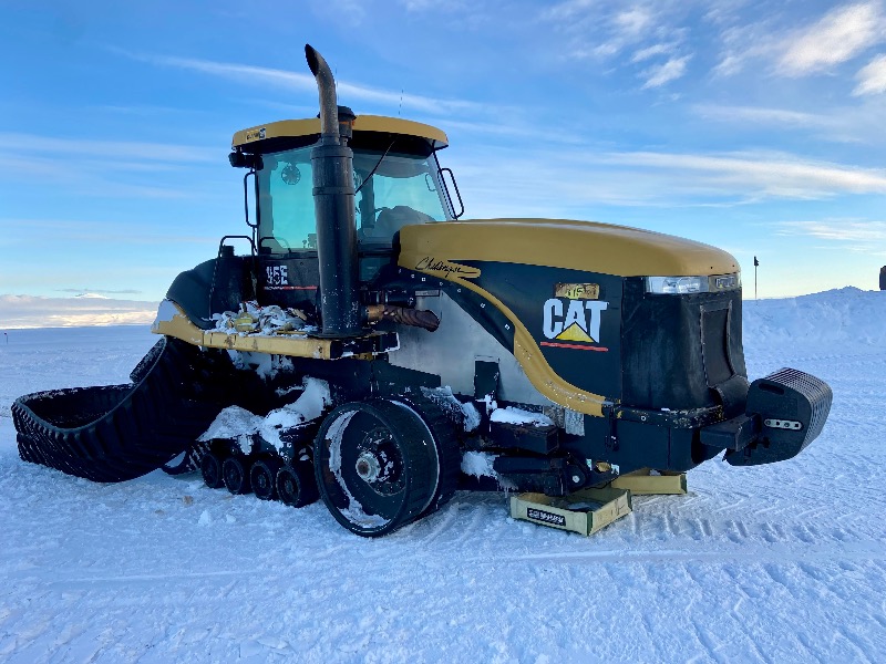 A 3630T Mobile Track Solutions (MTS) tractor with a groomer (drag) in tow. MTS tractors are powered by CAT