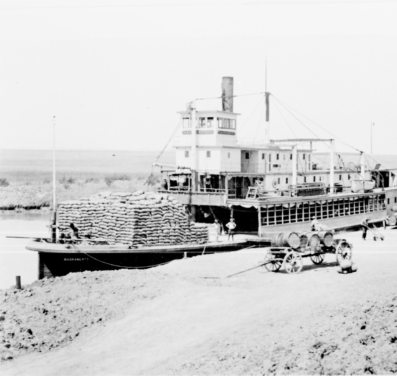 At the Sparling Lease. Barley loading on the stern-wheeler Sacramento at Sparling's Landing on the West Levee.