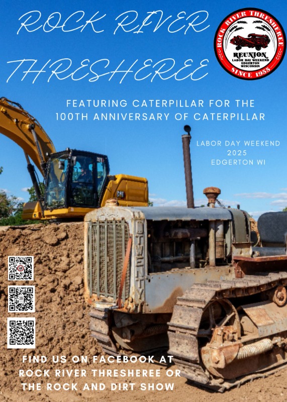 If you are in the midwest for the Rantoul show and plan on going to Elkader show but looking for something to do in-between think about attending the 69th annual Rock River Thresheree in Edgerton WI on Labor day weekend featuring Caterpillar. Any and all Caterpillar products welcome. Many activities around the grounds and large digging area by The Rock and Dirt Show area. There will be two feature areas one on each end of the grounds. Message me for more details.